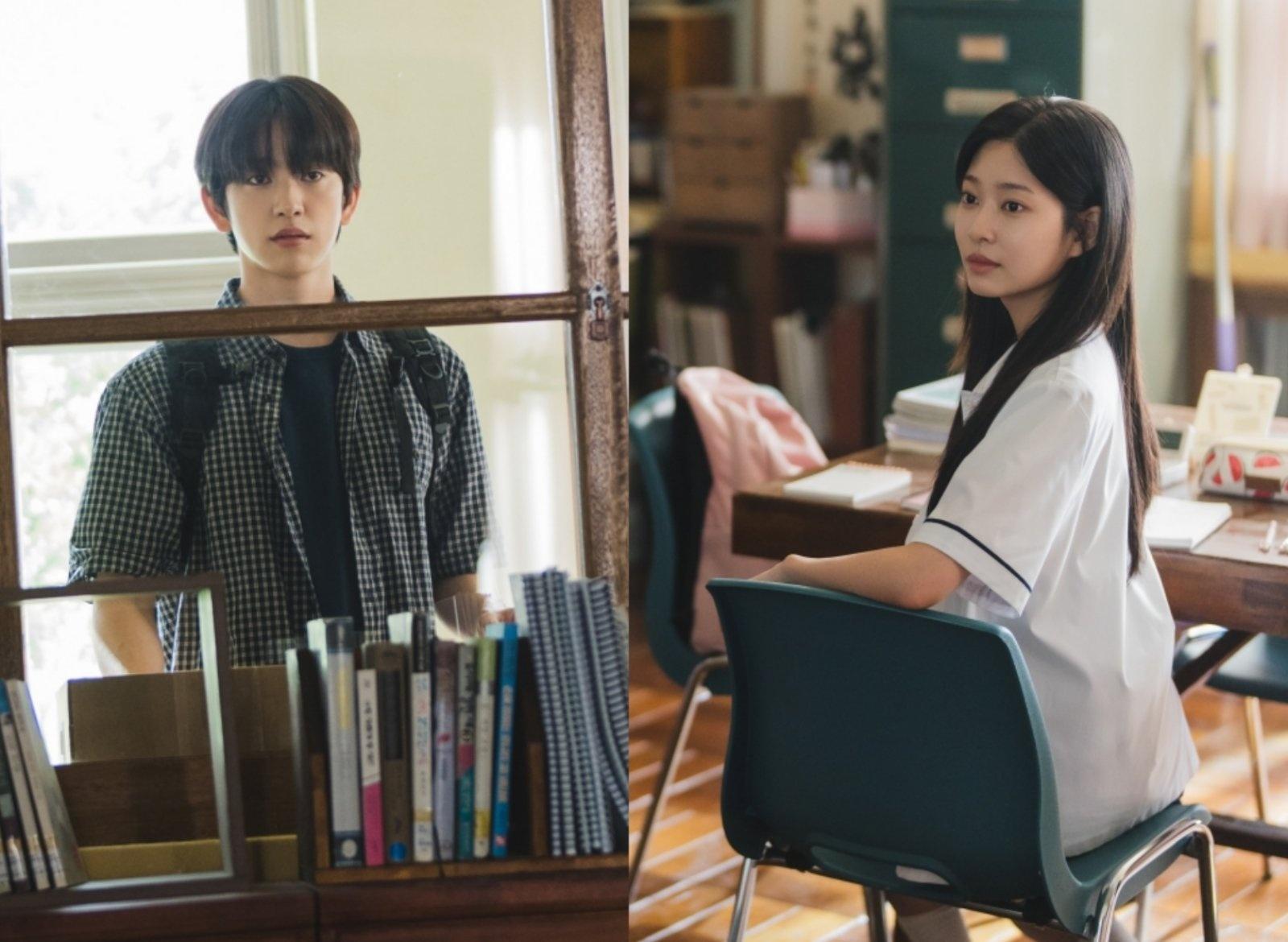 公開された写真には、転校したばかりで制服も着ずに学校に足を踏み入れたヨン・テソと、制服を着たまま図書館に一人で座っているモ・ウナの姿が写っています。淡々とした表情で廊下を歩くヨン・テソと勉強に没頭しているモ・ウナからは、19歳の初々しさがそのまま感じられます。
